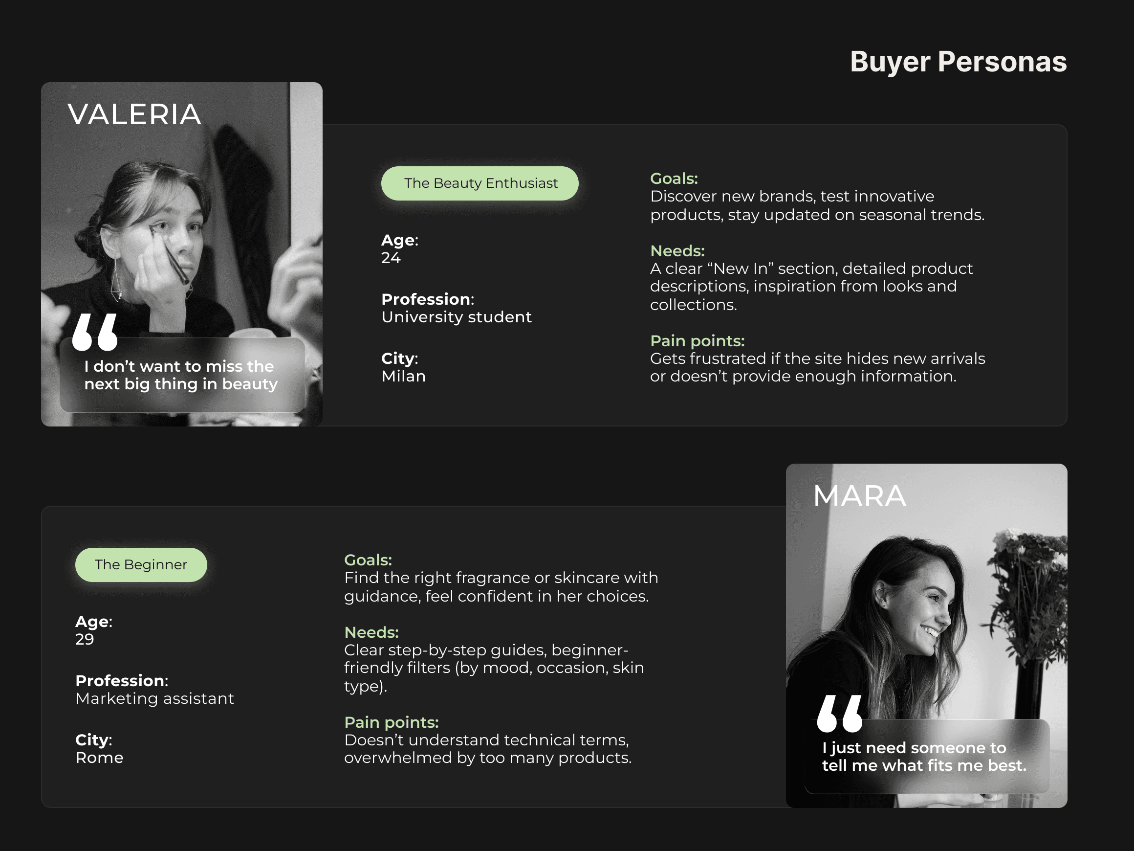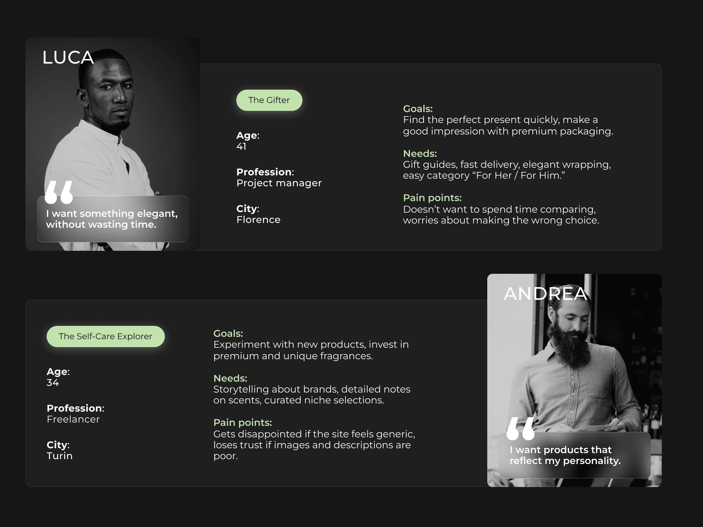 I chose a clean and elegant interface that fits a brand about perfumes, senses, and affordable luxury.